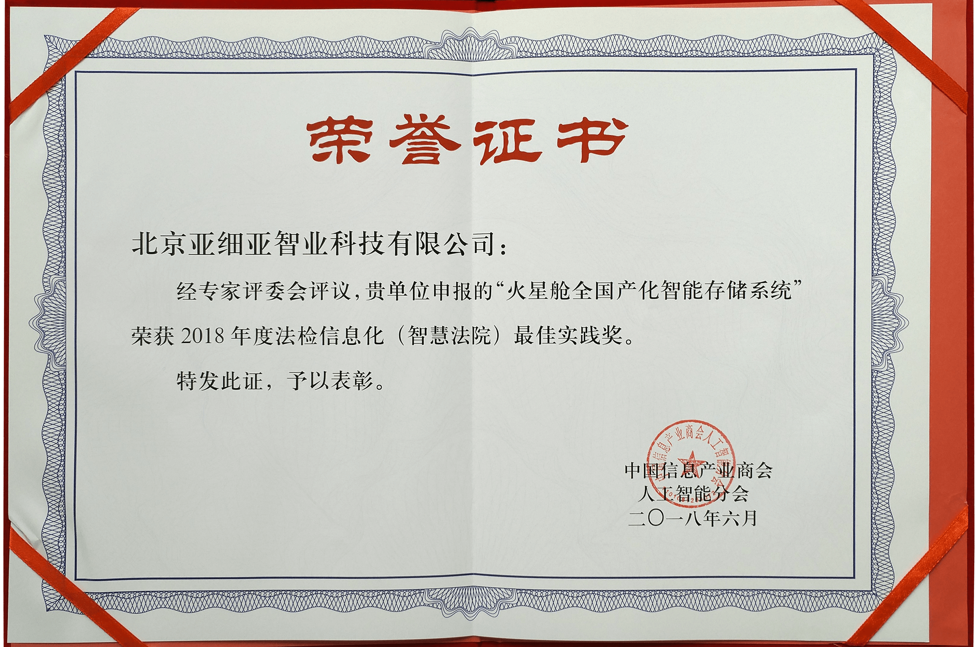 2018年度法檢信息化(智慧法院)最佳實踐獎——證書