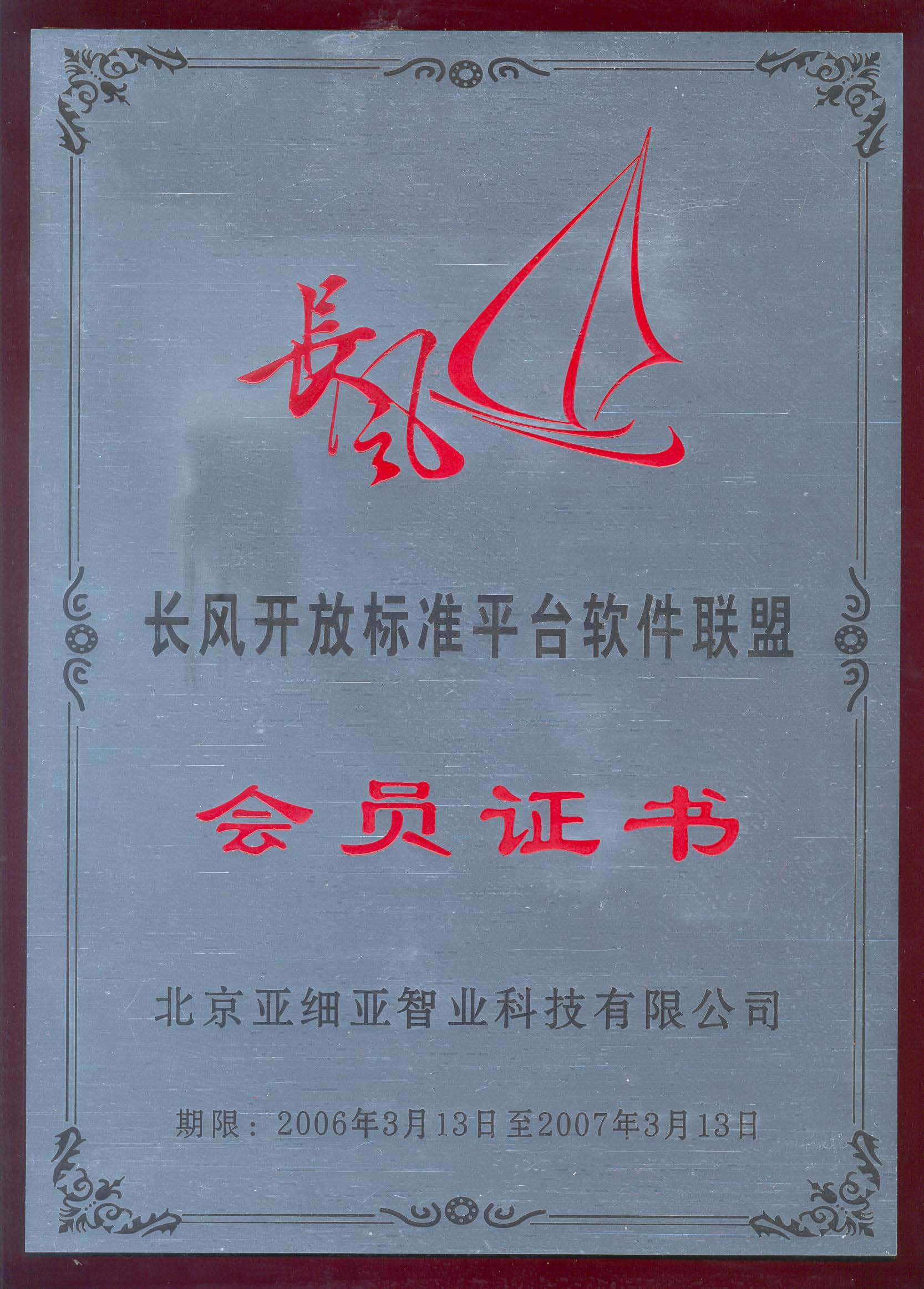 長風會員證書
