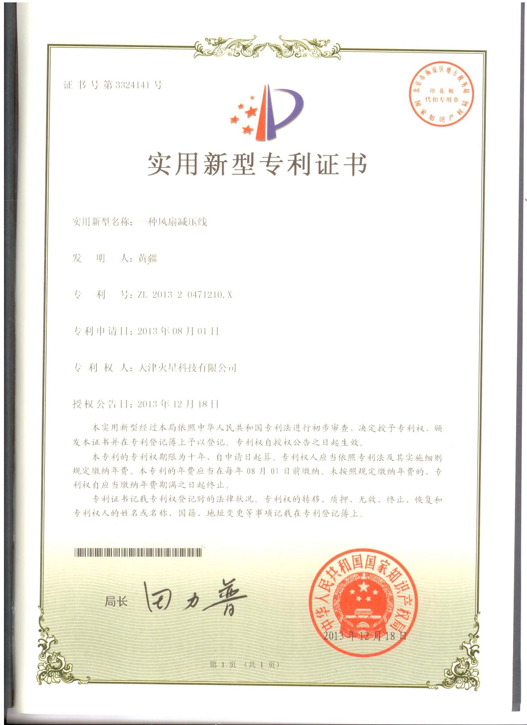 實用新型-一種風扇減壓線